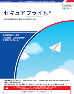 ご契約の際には「契約締結前交付書面(契約概要/注意喚起情報)」、「ご契約のしおり・約款」、「特別勘定のしおり」を必ずご覧ください